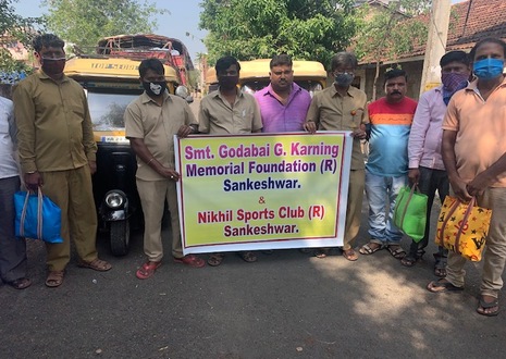Distributed 100 ration kits to auto rickshaw drivers at Sankeshwar during lockdown.